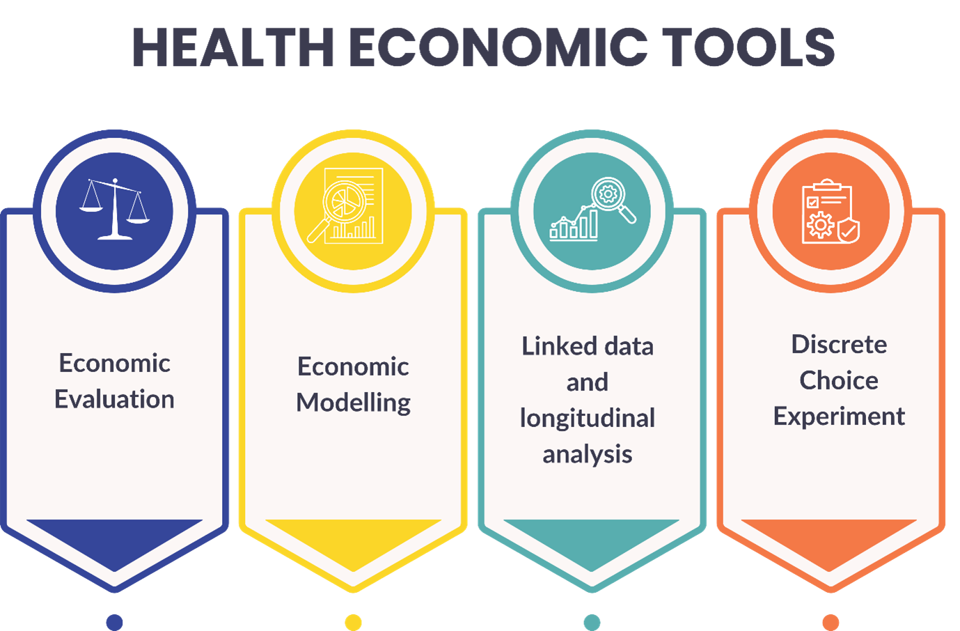 Health economists have a number of tools that they use to support them in their work. The figure below presents some common methods used by health economists which we will discuss briefly in the next section.