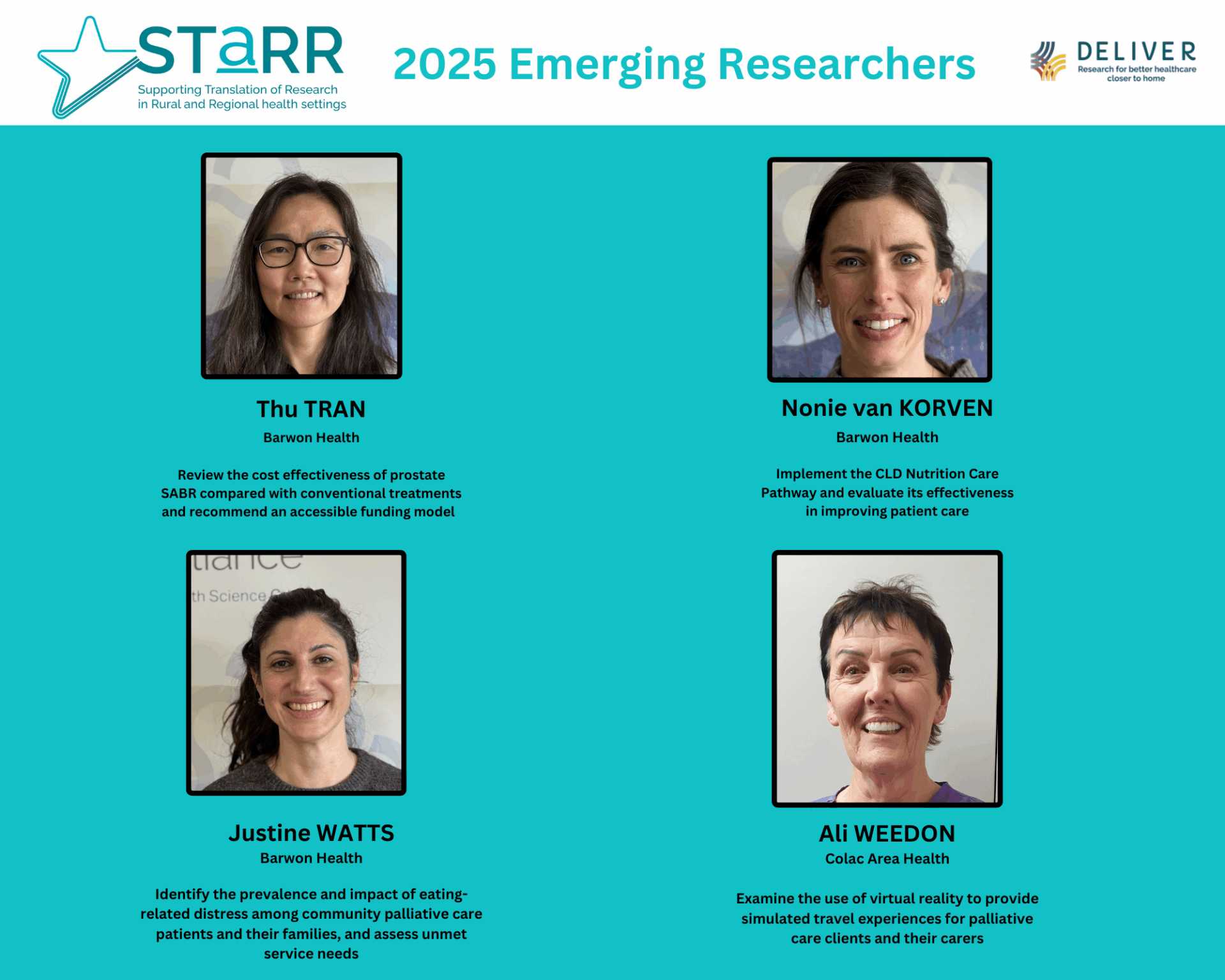 With support from the Victorian Department of Health, Western Alliance are delighted to provide our centrepiece research capability building program, known as the STaRR (Supporting Translation of Research in Rural and Regional areas) Program.